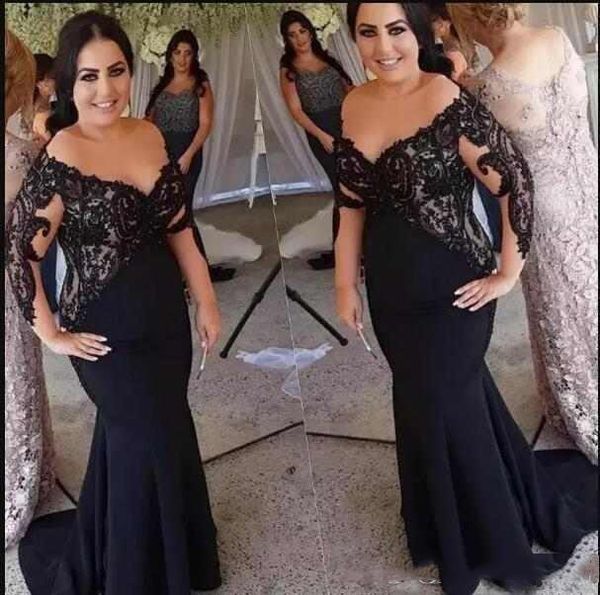 2019 новая мода плюс размер мать невесты платья sheer шеи с длинными рукавами шифон кружева мать платья мать жениха платье, Black;red