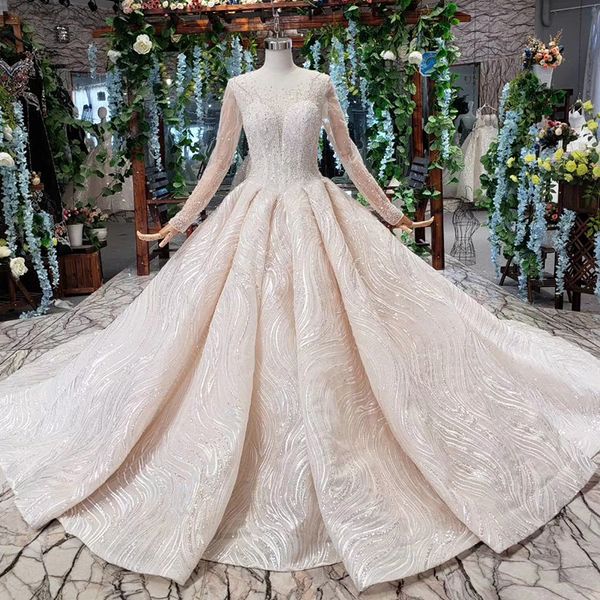 2019 последние чешские свадебные платья с длинным рукавом из тюля иллюзия о шеи зашнуровать назад кристалл жемчужина аппликация узор кружева, White