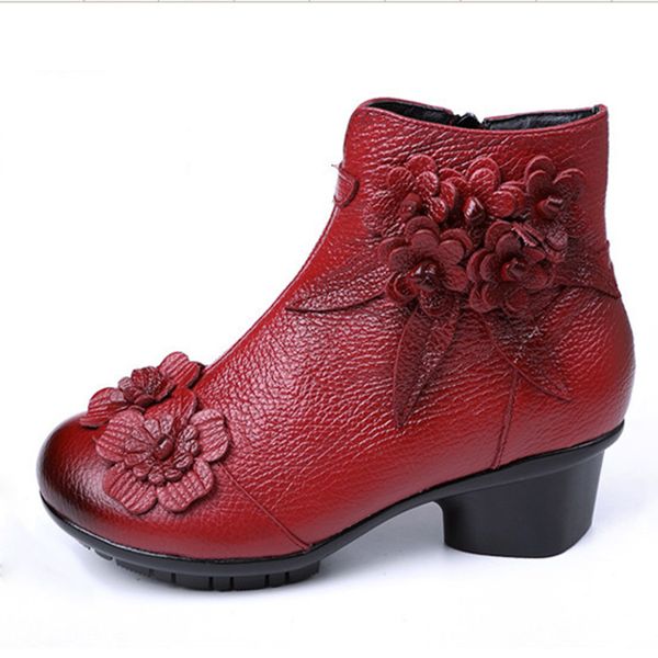 2019 new arrival vintage boots genuine leather ankle boots new winter women warm shoes soft non-slip bottom soles plus size