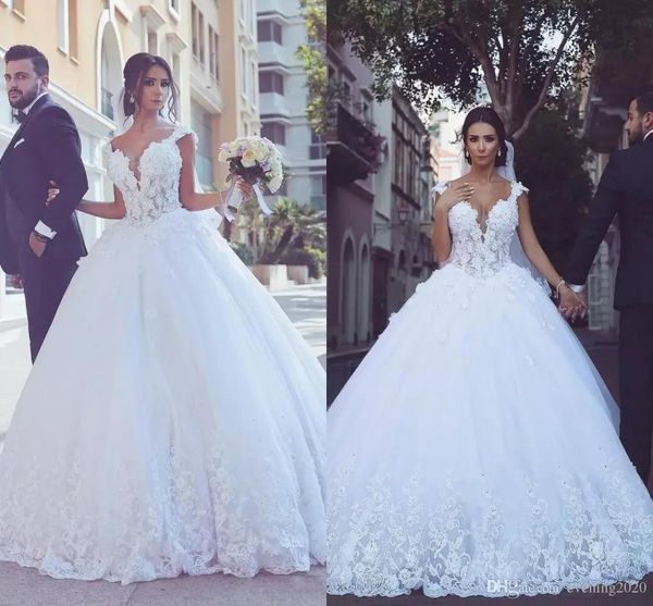 2019 элегантное белое бальное платье свадебные платья с открытыми плечами с коротким рукавом аппликации свадебные платья свадебные платья на, White