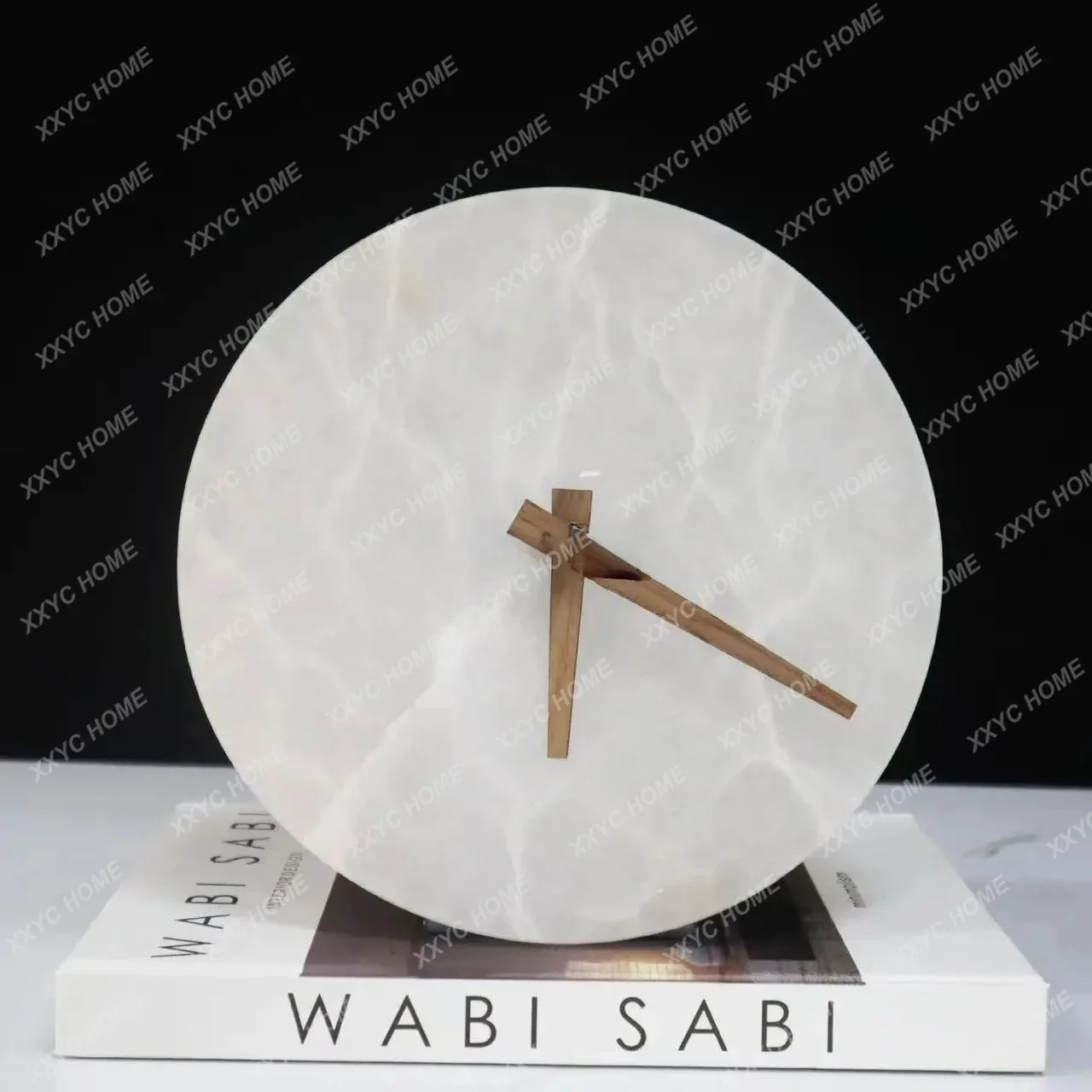 Высококачественные легкие роскошные креативные мраморные часы с орнаментом для гостиной, декоративные часы, модель комнаты, кабинета, прикроватная тумбочка, настольные часы
