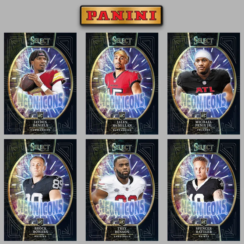 Panini 2024 Nfl Select Neon Icons Black Prizms Jayden Daniels Brock Bowers Diy Домашние коллекционные карты с изображением регби и звезды Подарочная коллекция