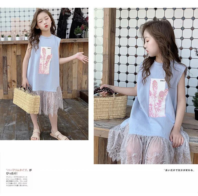 2020 Летние Детские платья для девочек, Сетчатое милое платье в стиле пэчворк, платья принцессы без рукавов для маленьких девочек, празднична...