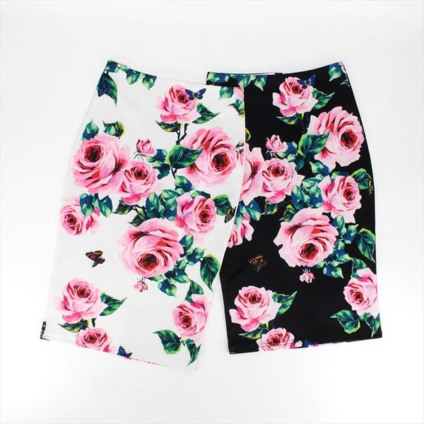 2020 весна летний карандаш юбка женщины высокая талия цветочный распечатать midi юбку старинные элегантные bodycon офисная леди стиль, Black