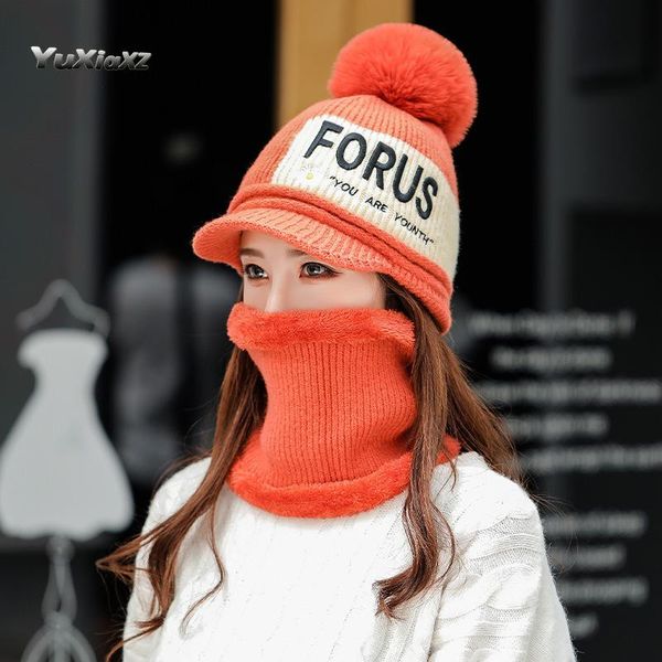 2020 женская новая зимняя модель негабаритная шерстяная вязать шерстяной шляпу с теплыми и пуховыми буквами и нагрудничкой, Blue;gray