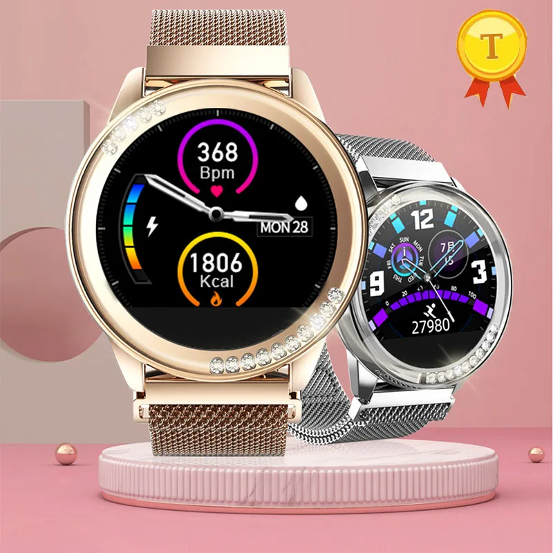 2020, женские Смарт-часы в металлическом стиле, IP67, водонепроницаемые, 24 часа, пульсометр, измеритель артериального давления, подарок для женщ...