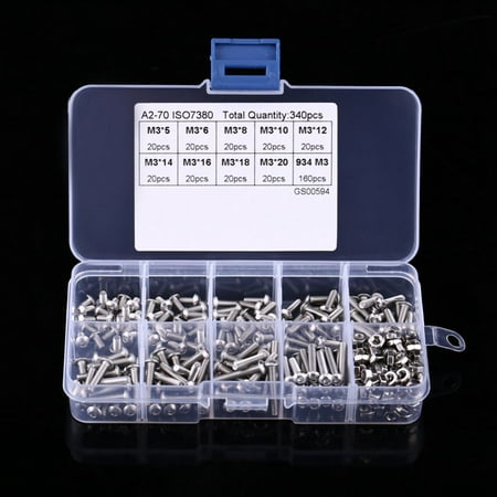 340pcs M3 Hex Socket Screw Nut Stainless Steel M3 Screws Nuts Assortment Kit Fastener