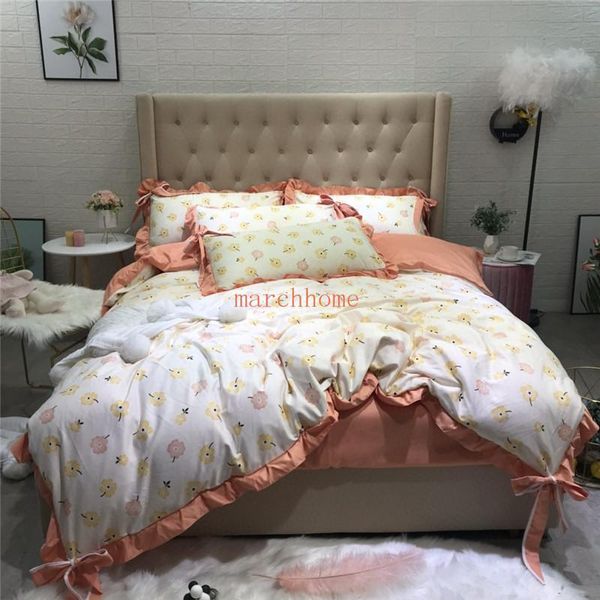 2020 новый стиль шелковое постельное белье с рюшами лук модные симпатичные цветочный печати принцессы постельные принадлежности бесплатная д