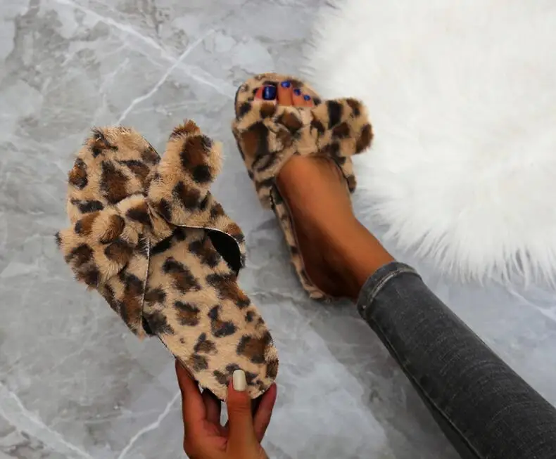 2020 осень/зима размера плюс домашние женские тапочки; Домашняя обувь на плоской подошве, большие бархатные леопардовые печать цветная печат...