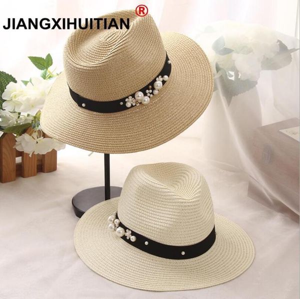 2020 простой граф стереоскопического pearls лето шляпа строчка цвета пляж праздник соломенной шляпы солнца для женщин летом стиль шляпы, Blue;gray