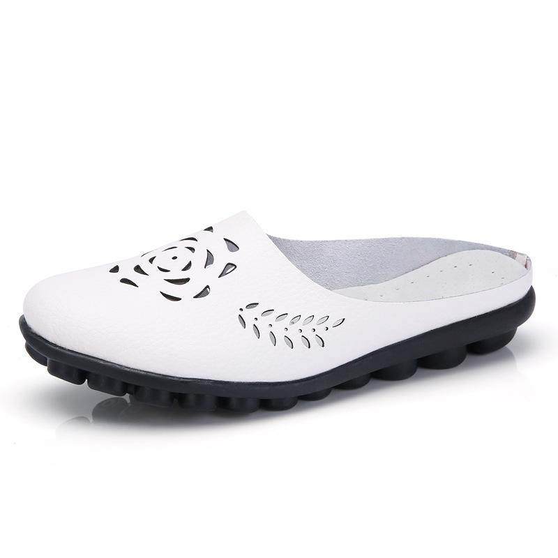 2021 Весна и Осень Новые Низкие Кеды на Плоской Подошве с Перфорацией Дуду Женские Туфли Одинарные Большой Размер Повседневные Полушлепанцы Мягкая Кожа Производитель-Поставщик 35