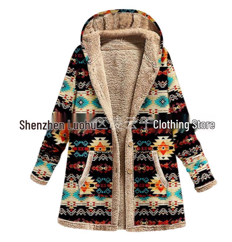 2021 Женская зимняя хлопково-льняная толстовка с капюшоном и принтом, флисовое пальто XXL