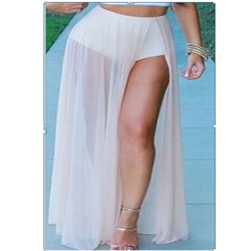 2021 Женская летняя обувь пляжи Юбка из сетчатой ткани однотонные Цвет Высокая талия длиной в Пол С Разрезом Длинное платье для вечерние коктейльное платье