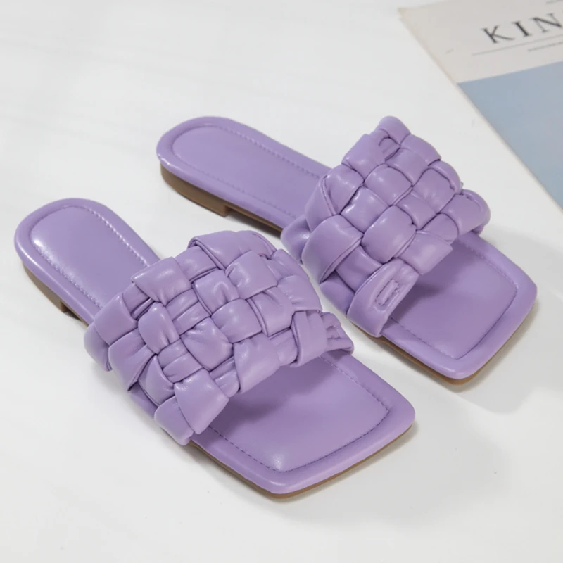 2021 Женская сумочка с квадратный носок женские летние тапочки; Повседневная обувь на плоской подошве; Женская пляжная обувь размера плюс, же...