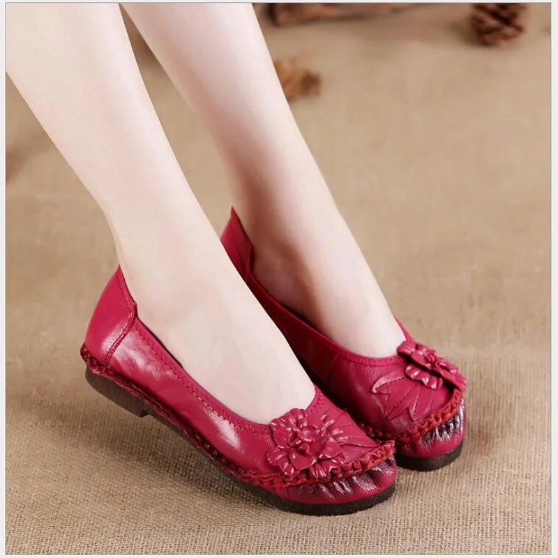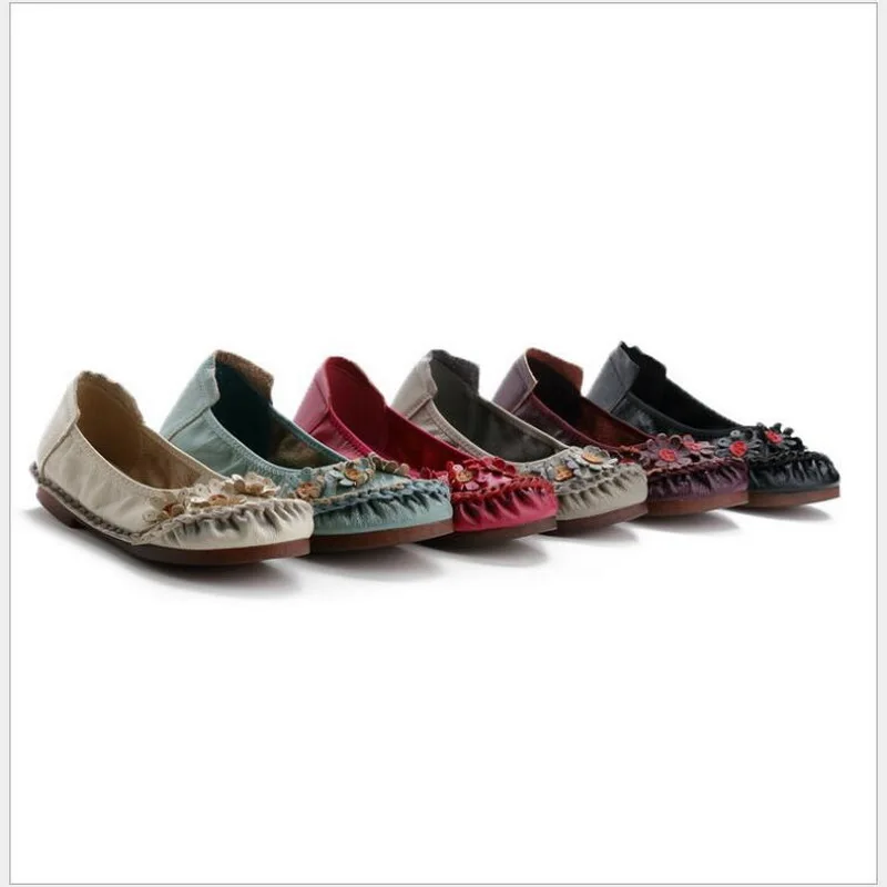 2021 Новая женская обувь из натуральной кожи; Повседневная обувь с цветочным принтом на плоской подошве; Большие размеры круглый носок Стиль ...