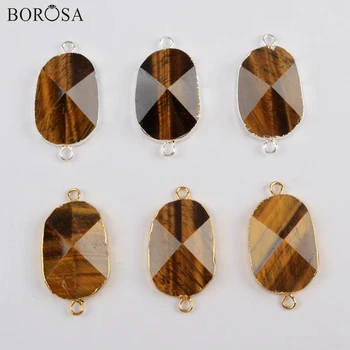 BOROSA 5PCS Gold Color Tiger's Eye Stone Faceted Connectors Gems Double Charms for Bracelet Jewelry Handmade G1814