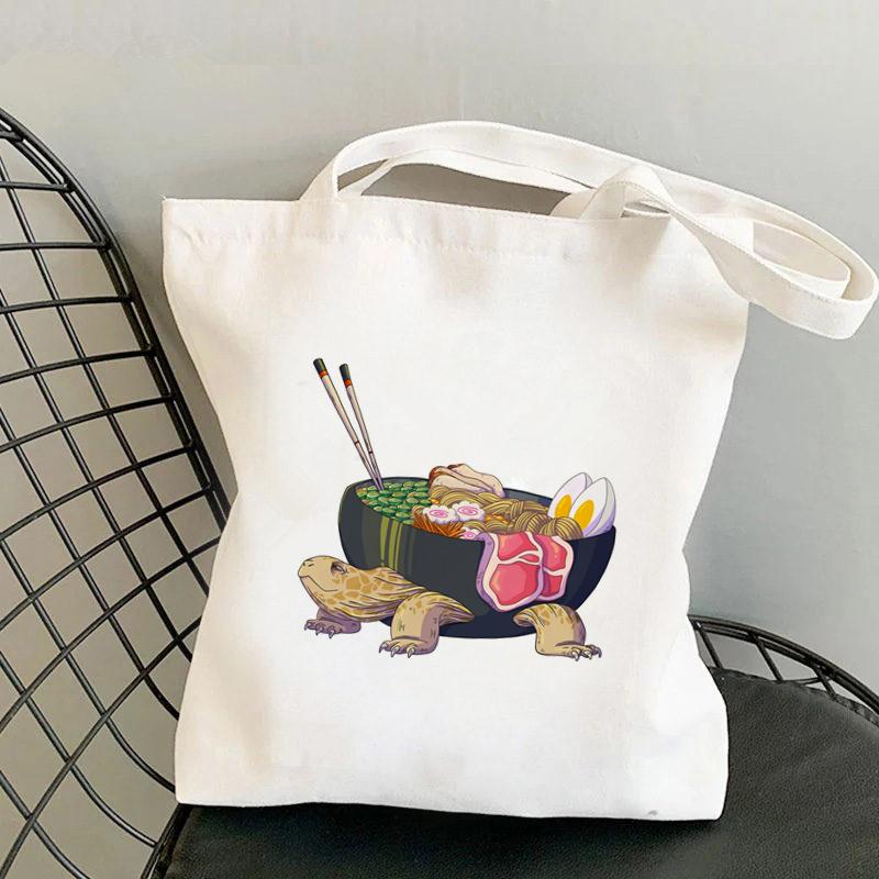 2021 женская большая сумка-шоппер Ramen с черепаховым принтом Harajuku, сумка-шоппер для девочек, сумка для покупок на плечо, женская холщовая сумка