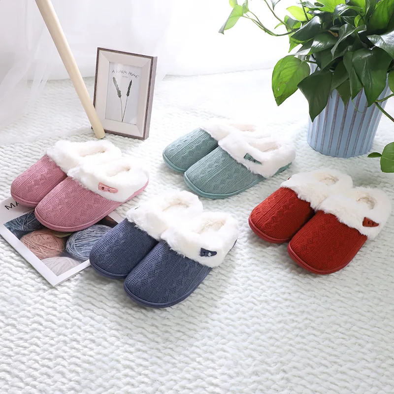 2021 женские тапочки, теплые Плюшевые Вязаные тканевые домашние хлопковые тапочки для влюбленных, зимняя обувь с мягкой подошвой, женские и м...