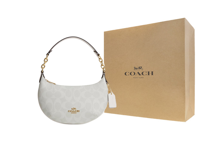Сумка через плечо Payton из лакированного холста с кожаными деталями, малая, женская, золотистый, меловой и ледниково-белый COACH