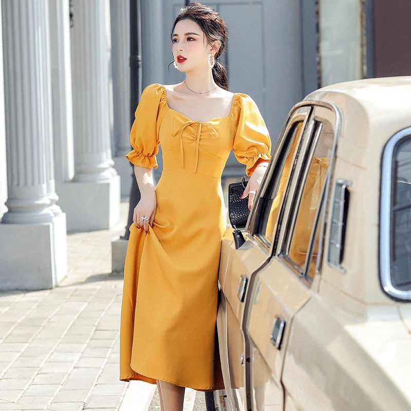 2021 летние новинки для женщин с рукавами в форме листа лотоса для девочек платье однотонное вечернее платье элегантные темпераментные с кор...