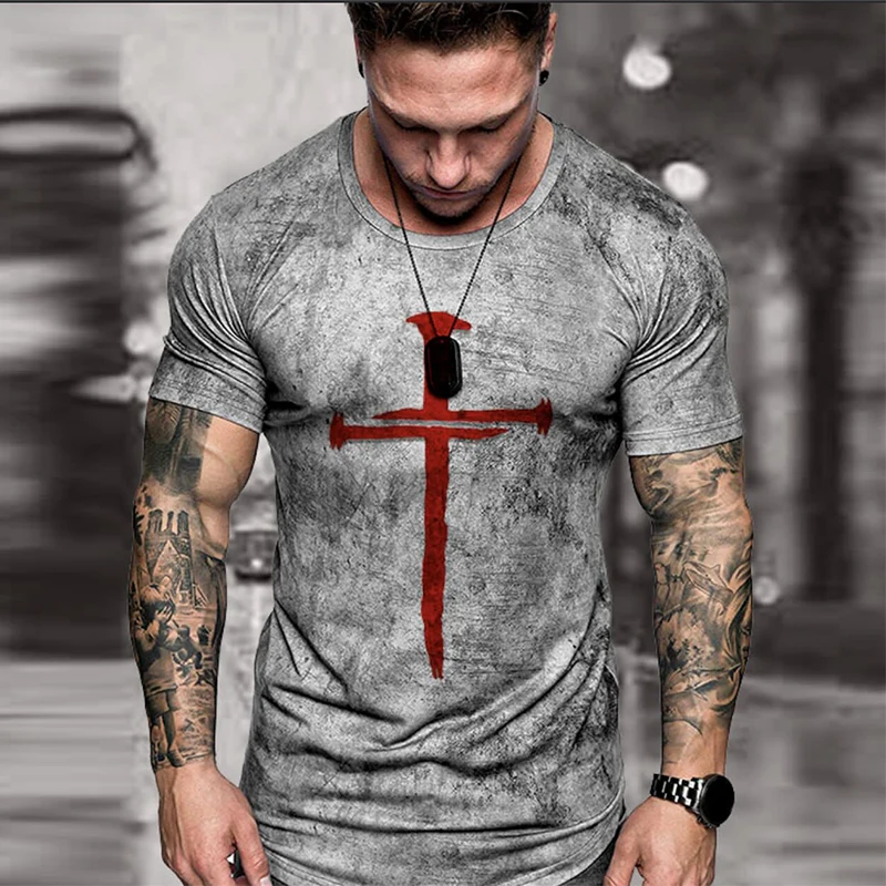 2021 летняя винтажная Приталенная футболка с принтом Креста, мужская повседневная модная женская футболка с круглым вырезом, топы, уличная од...