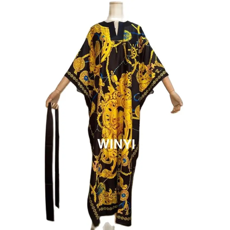 2021 мода взлетно-посадочной полосы длиной до пола длинное платье размера плюс для женщин с рукавами «летучая мышь» Вязание эластичная печат...