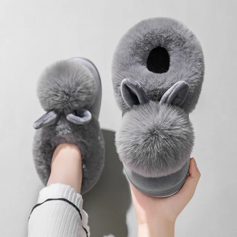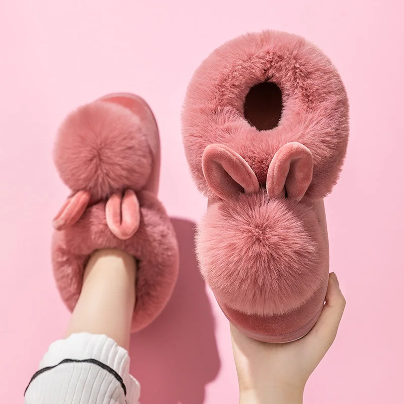 2021 новые модные осенне-зимние хлопковые тапочки, домашние тапочки с кроличьими ушками, зимняя теплая обувь, женские Симпатичные плюшевые Та...