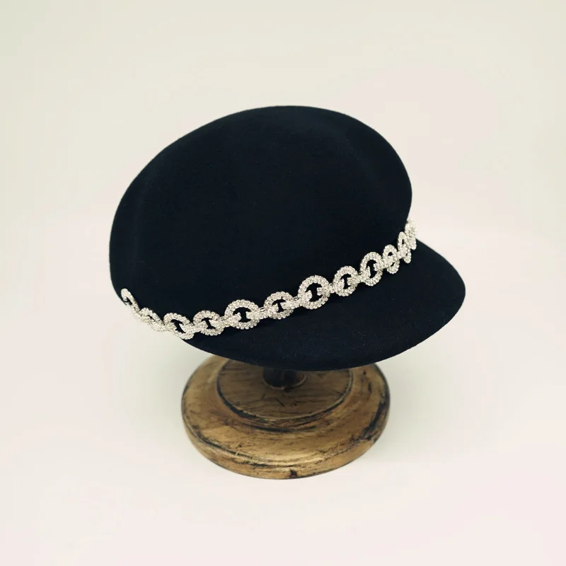 202110-panshi-япония заказ чёрная шерстяная круглая цепочка твердая Повседневная Женская восьмиугольная шляпа женская шляпа
