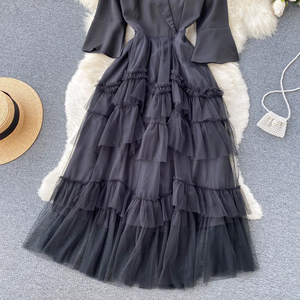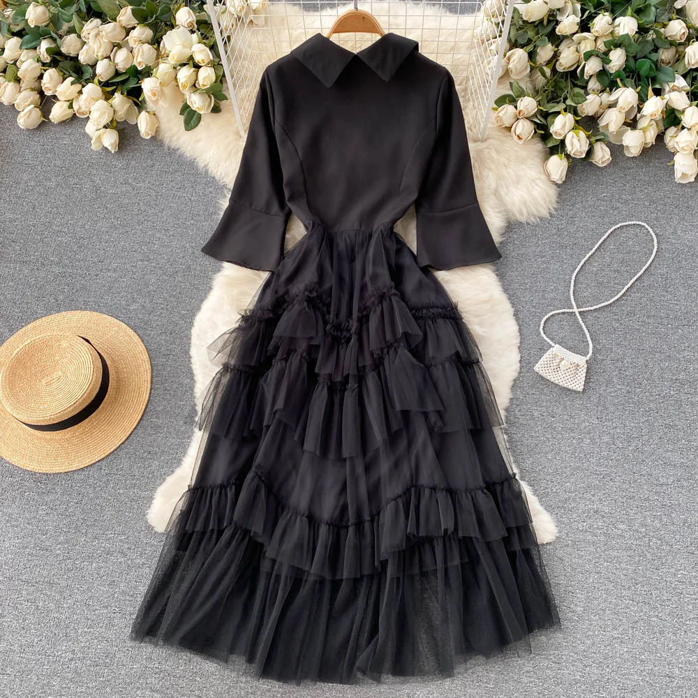 2022 Весна и лето новое платье женское пышное платье темперамент маленький аромат ретро платье с длинным рукавом Маленькое черное платье