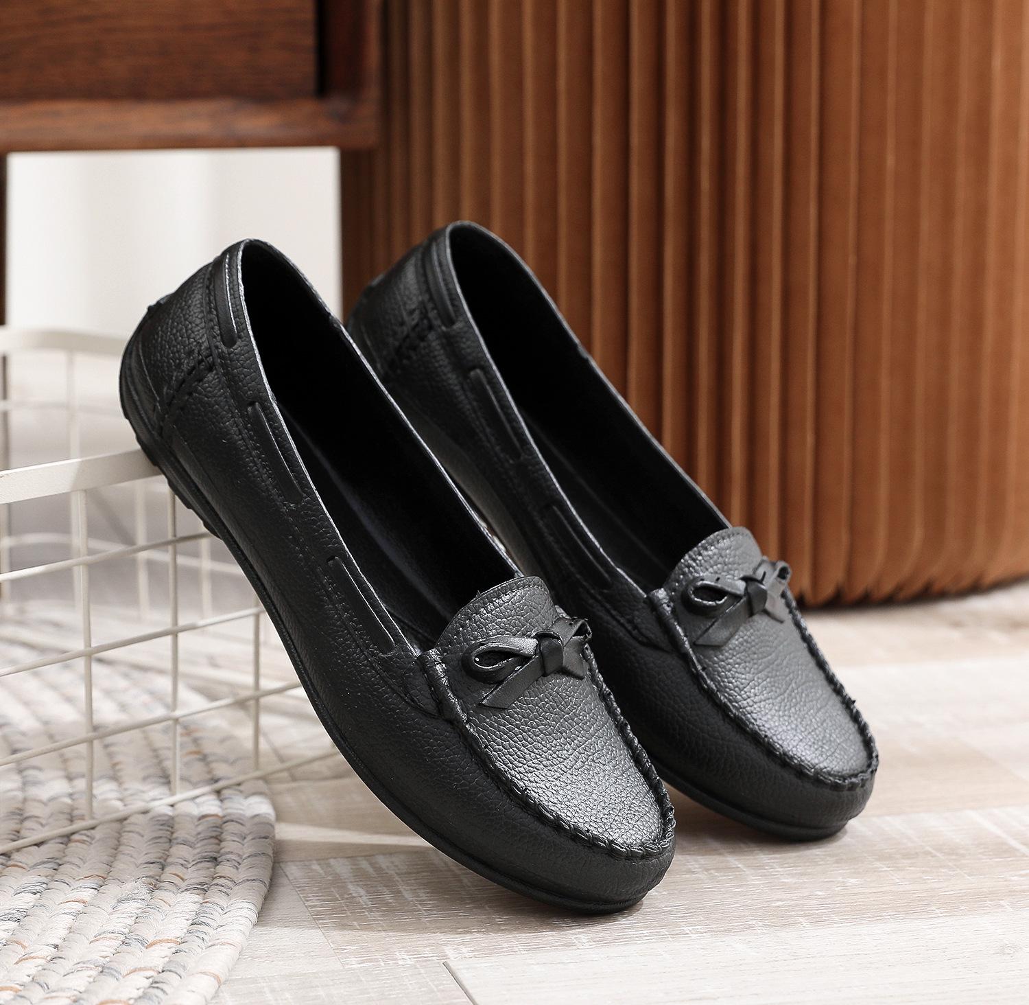 2022 Женские белые лоферы в корейском стиле - Плоские, для мам, Повседневные с низким вырезом, Обувь для медсестер и беременных. 38 чёрный