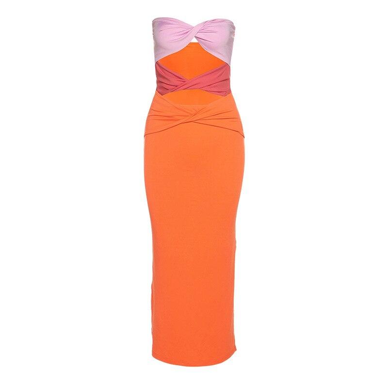 2022 Лоскутное облегающее платье без бретелек Y2K, сексуальные женские летние пляжные платья без рукавов с открытой спиной, вечерние клубные платья миди L оранжевый