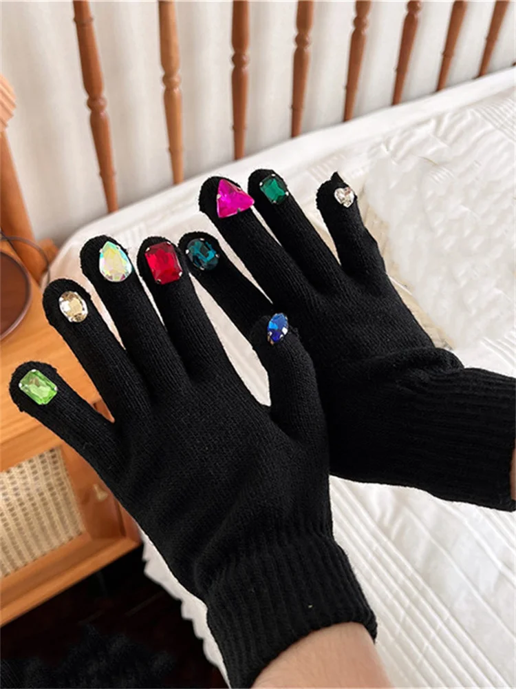 2022 Модные женские перчатки Стразы в стиле пэчворк вязаные зимние теплые эластичные мягкие варежки с пальцами уличная одежда