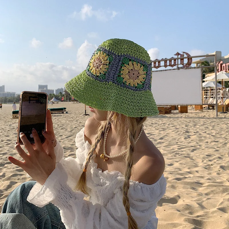 2022 Новая цветная соломенная шляпа для женщин летние пляжные шляпы для отдыха на море Складная плетеная Кепка рыбака уличная Солнцезащитная...