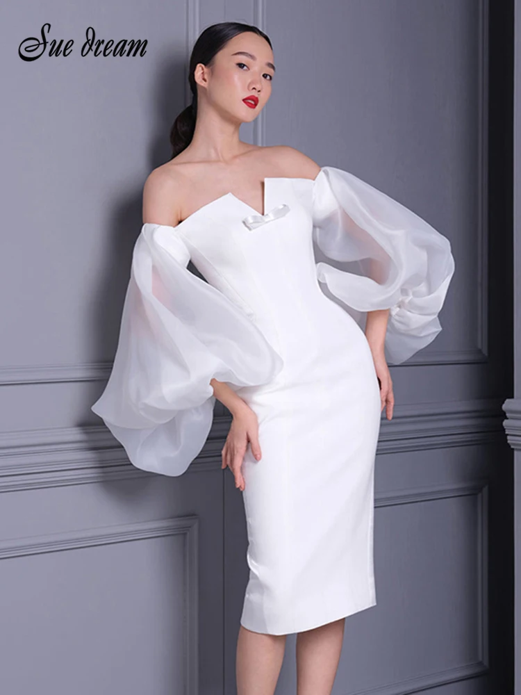 2022 Новое весеннее женское платье сексуальное без бретелек с открытыми плечами рукав-фонарик облегающее Бандажное платье элегантные черные...