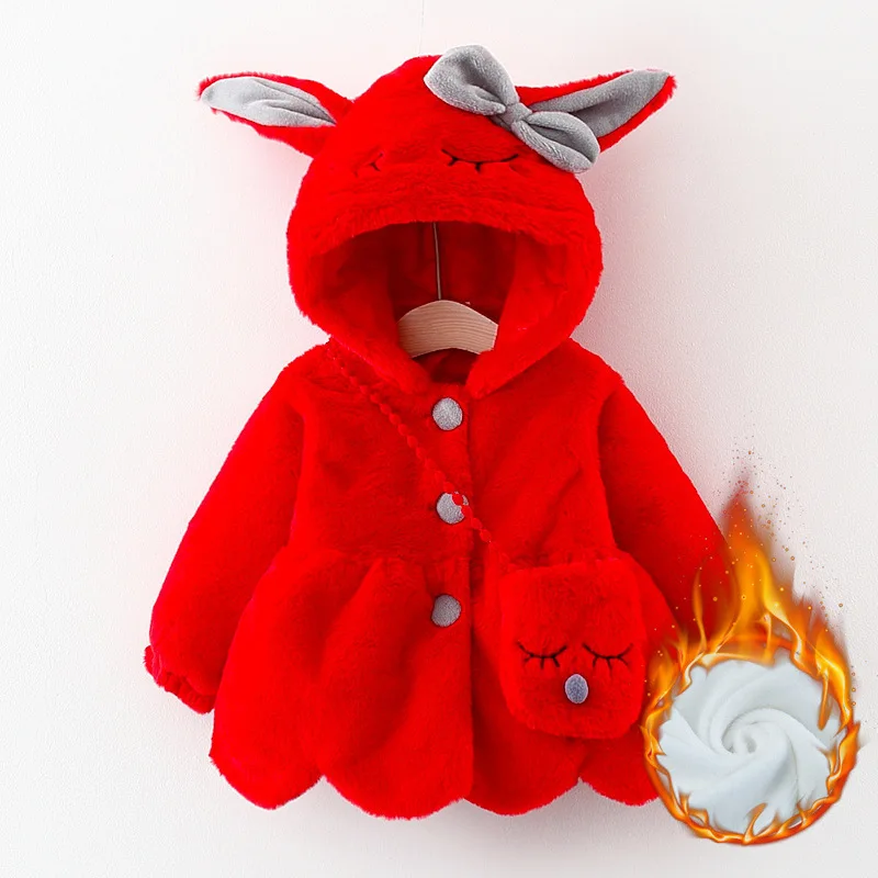 2022 Рождественская одежда для маленьких девочек, плюшевая куртка с кроликом, осенне-зимнее теплое пальто для девочек с капюшоном, фланелевая...