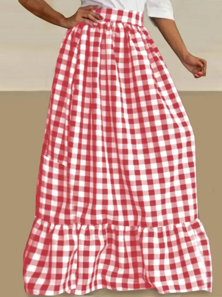 2022 богемная Женская клетчатая юбка VONDA, Женская винтажная плиссированная Свободная юбка с оборками, летняя мешковатая клетчатая юбка больш...