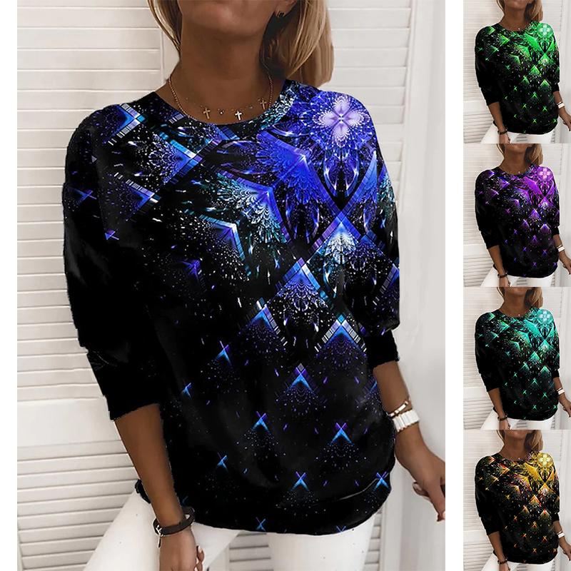 2022 женская новая дизайнерская футболка с принтом, зимняя футболка свободного размера, осенние модные топы с круглым вырезом, элегантный пуловер с длинным рукавом