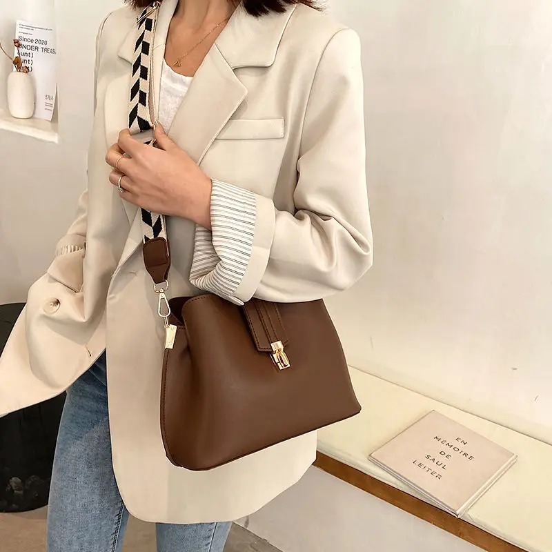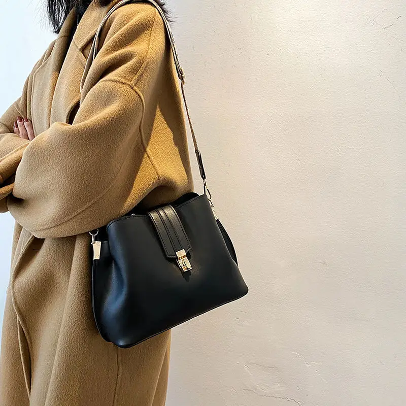 2022 женская простая винтажная маленькая сумка-мешок через плечо из искусственной кожи дизайнерская модная женская роскошная черная сумка-т...