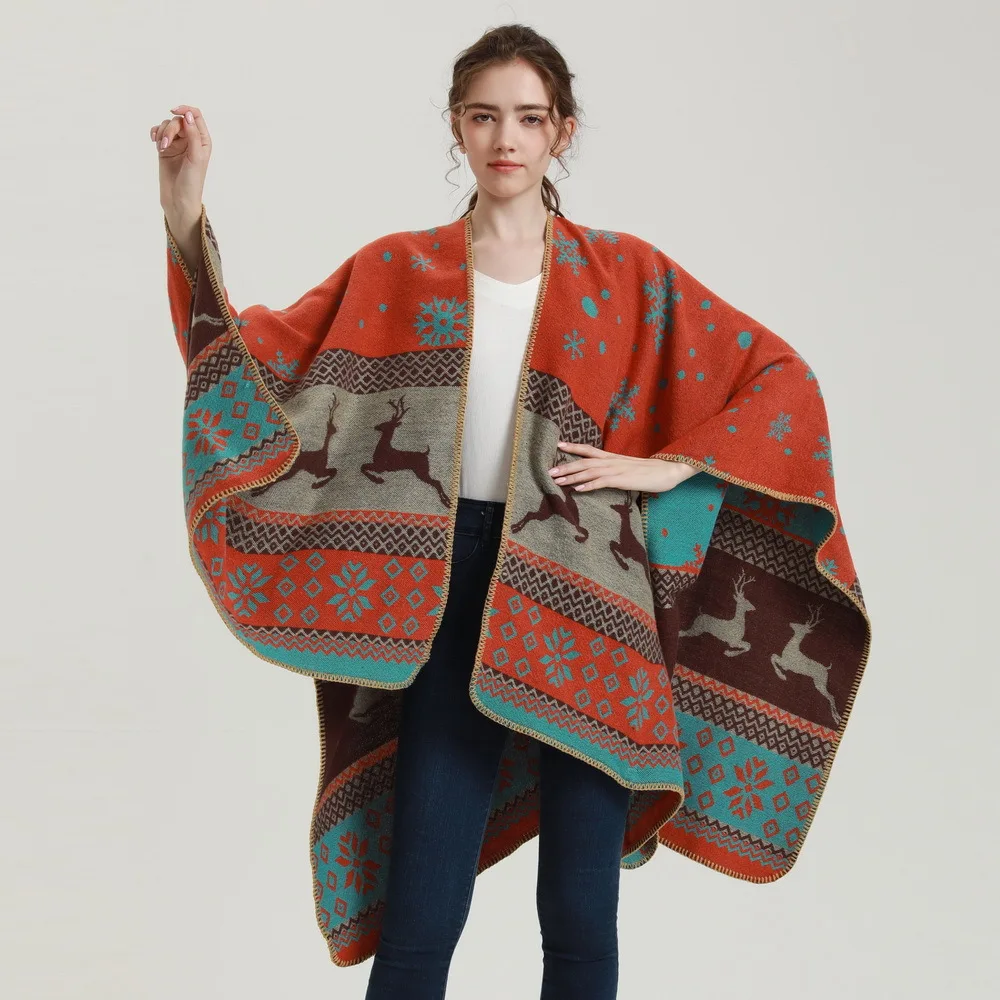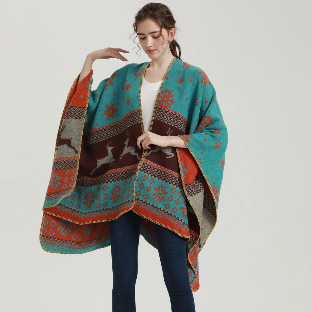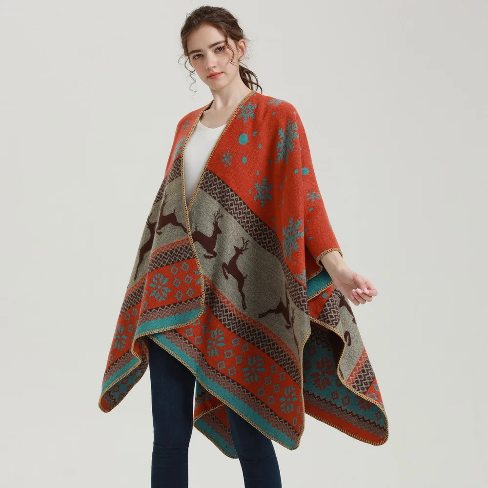 2022 искусственный кашемир раздельная шаль пончо накидка зимний теплый шарф Рождественский подарок снежный олень Двусторонняя Толстая Уличная одежда пальто