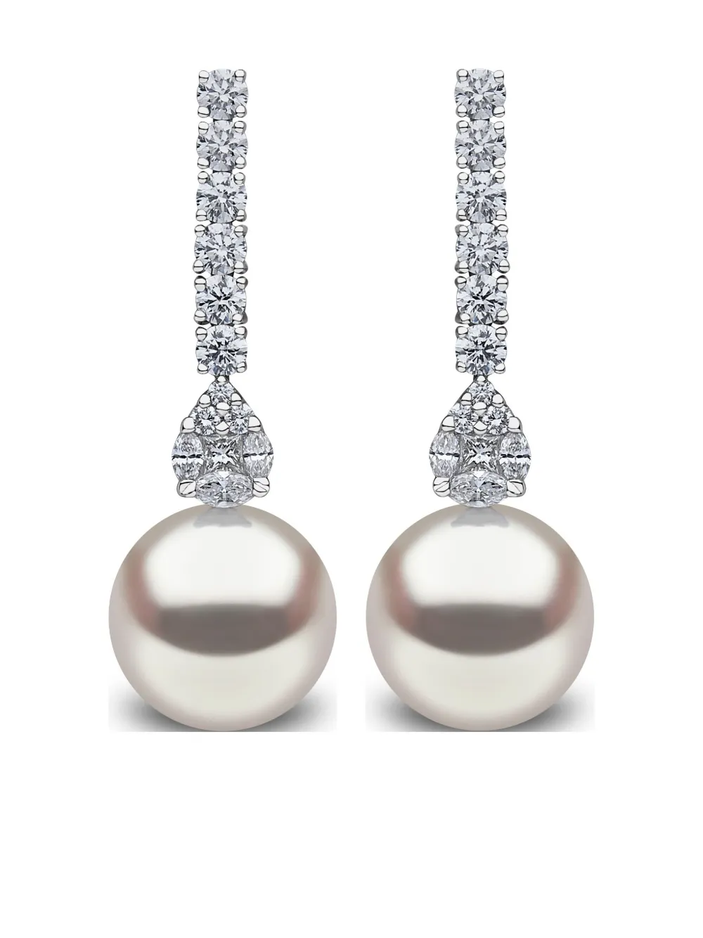 Серьги из 18-каратного белого золота с южноморским жемчугом и бриллиантами Yoko London, серебяный