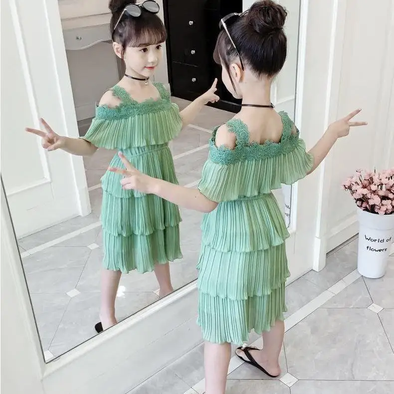 2022 летние платья для девочек в авангардном стиле, шифоновые платья принцессы на бретелях, эластичное плиссированное платье с оборками