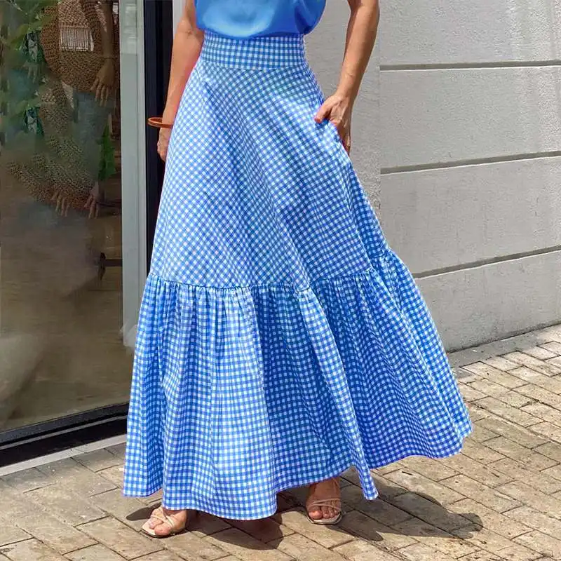 2022 летняя Весенняя винтажная клетчатая длинная юбка VONDA с высокой талией, Женская повседневвечерние ссированная Праздничная юбка А-силуэта...