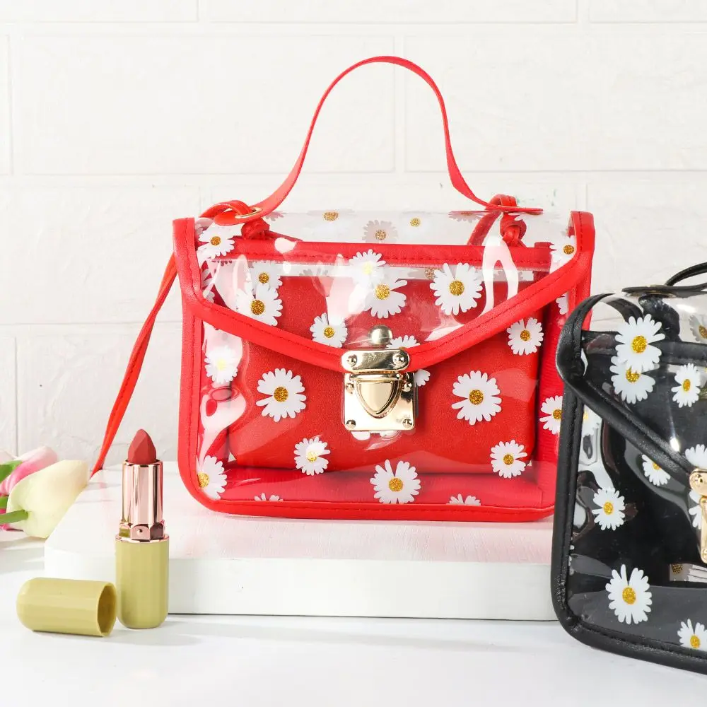 2022 модная женская прозрачная сумка через плечо с рисунком маргариток металлическая цепочка ремешок цветной блок сумка-мессенджер композит...