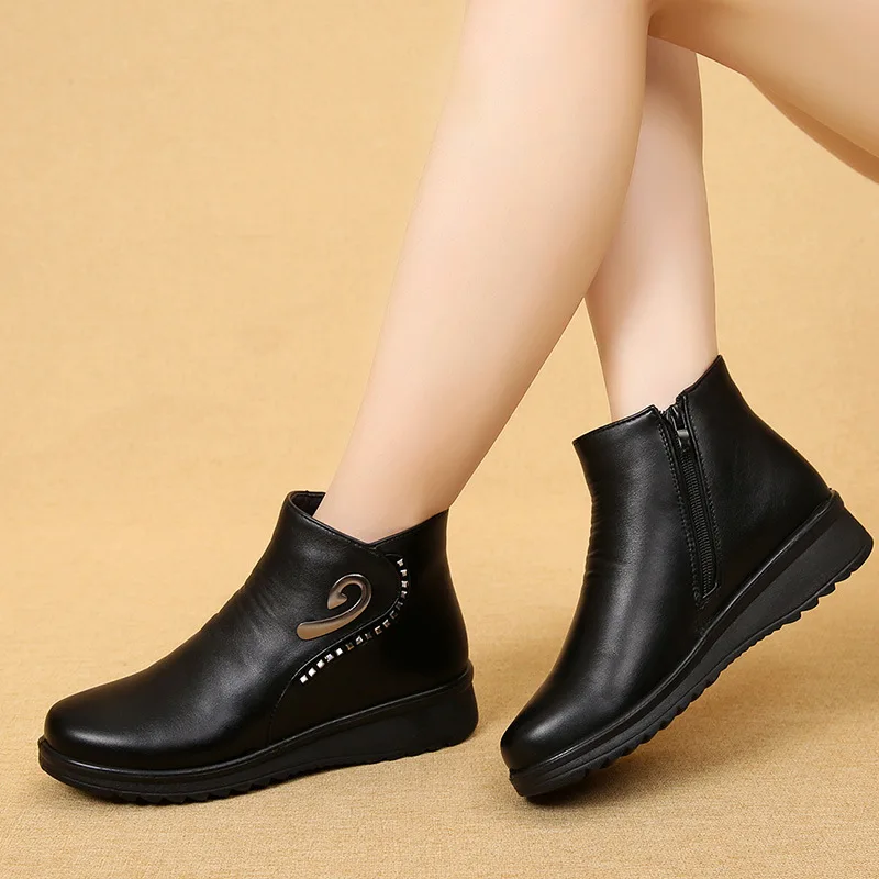 2022 модная зимняя обувь, женские кожаные Теплые ботильоны, женские водонепроницаемые толстые плюшевые теплые зимние ботинки, ботильоны для мам