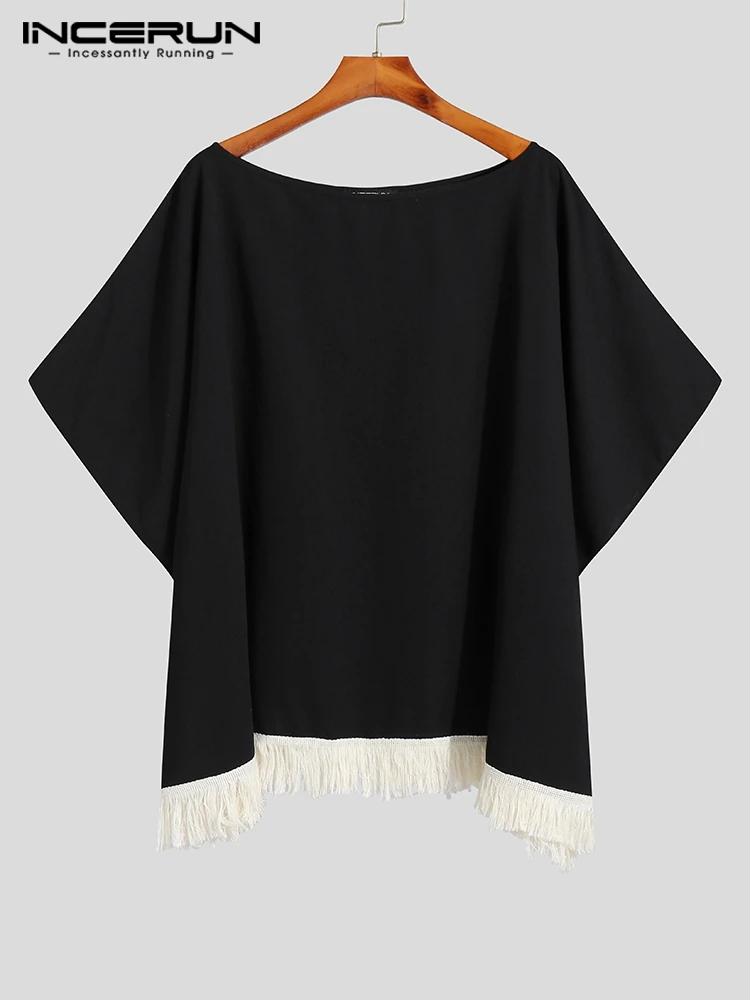 2022 модная мужская футболка INCERUN с бахромой в стиле пэчворк, уличная одежда с круглым вырезом, расклешенные футболки с рукавом до локтя, мужск...