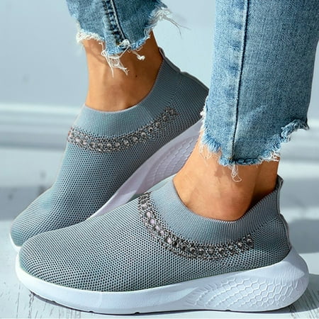 ERTUTUYI Women s Ladies Casual Crystal Slip On Mesh Breathable Sneakers Loafers Shoes Blue 40