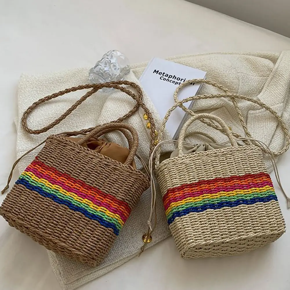 2022 новые женские бамбуковые пляжные сумочки, модная летняя соломенная плетеная Сумка через плечо, Бамбуковая ручная дизайнерская женская С...