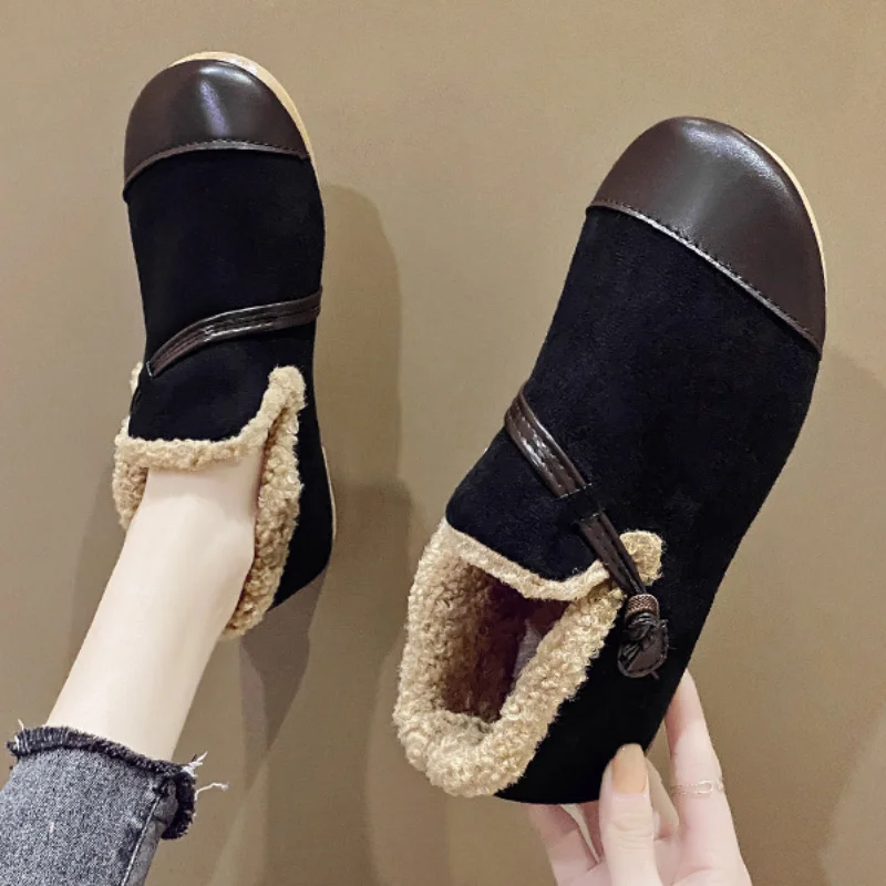 2022 плюшевые женские туфли с ремешком с пряжкой, слипоны, пушистая плоская повседневная обувь, зимние теплые лоферы, Женская хлопковая обувь,...