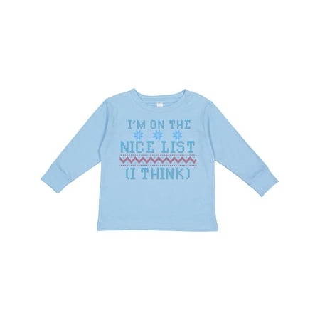 Inktastic Ugly Sweaters I m on the Nice List (I Think)r Gift Toddler Boy or Toddler Girl Long Sleeve T-Shirt