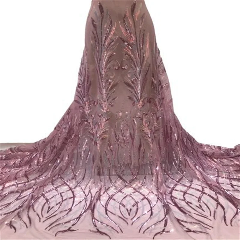 2022 розовая нигерийская Тяжелая бархатная кружевная ткань с блестками, африканская Кружевная Ткань 5 ярдов, французская Тюлевая кружевная т...